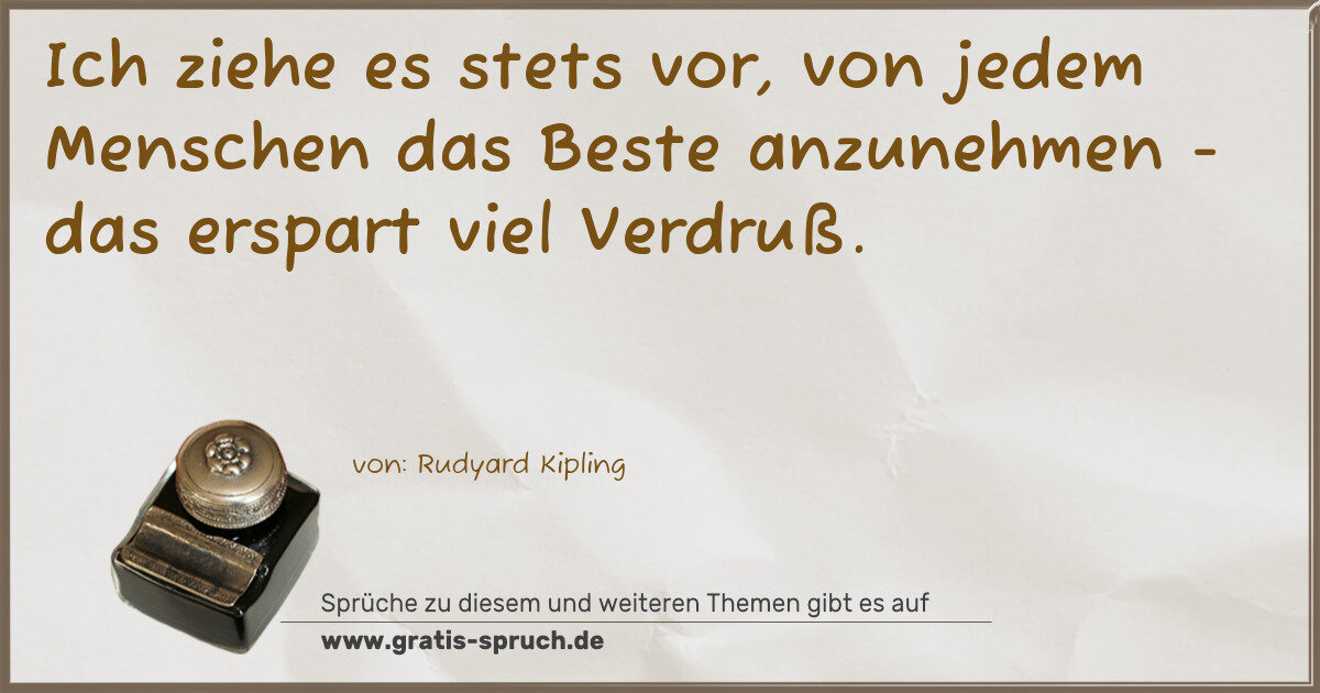 Ich ziehe es stets vor, von jedem Menschen das Beste anzunehmen - das erspart viel Verdruß.