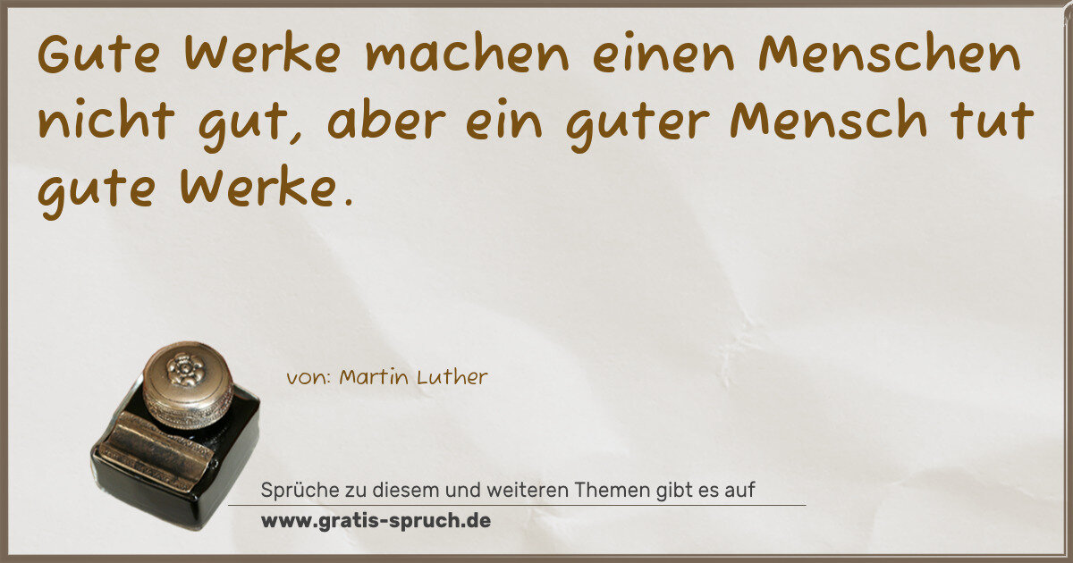 Gute Werke machen einen Menschen nicht gut, aber ein guter Mensch tut gute Werke.